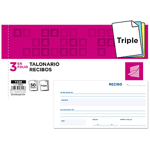 LIDERPAPEL - TALONARIO RECIBOS 3/Fº ORIGINAL Y COPIA SIN MATRIZ (Ref.T236)