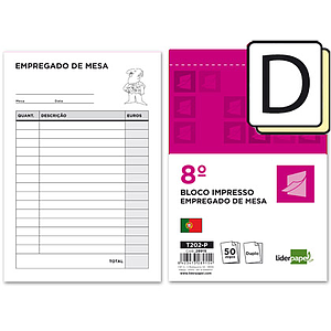 LIDERPAPEL - Talonario camarero octavo -sin iva- 202 duplicado-texto en portugues (Ref. T202-P)