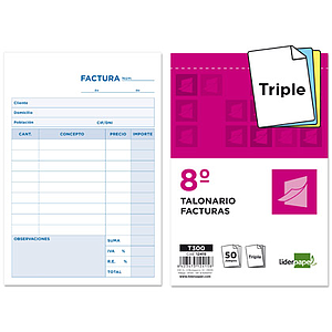 LIDERPAPEL - TALONARIO FACTURAS 8º ORIGINAL Y 2 COPIAS CON I.V.A. (Ref.T300)