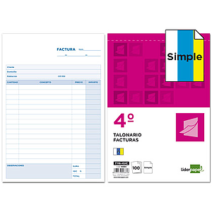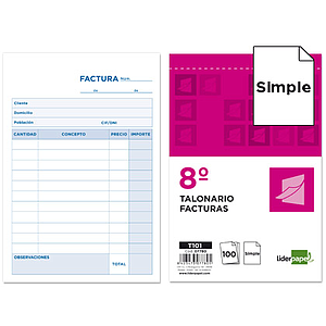 LIDERPAPEL - TALONARIO FACTURAS OCTAVO -SIN IVA- 101 (Ref.T101)