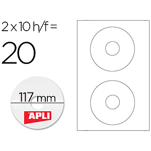 APLI - ETIQUETA ADHESIVA TAMAÑO CD-ROM 117 MM PARA FOTOCOPIADORA LASER INK-JET CAJA CON 10 HOJAS/20 ETIQUETAS (Ref.10603)